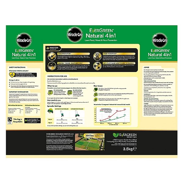• 1 x Miracle-Gro Natural 4-in-1 Lawn Food, Weed and Moss Prevention 85m2